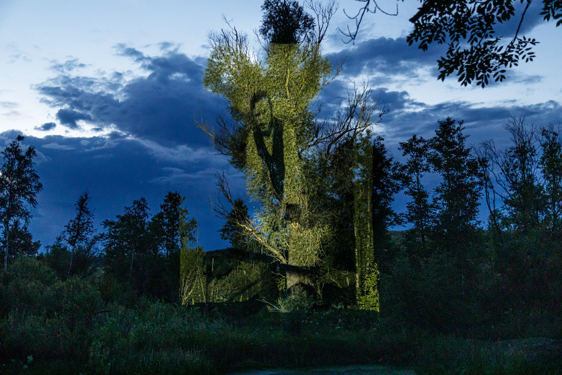 In the photographic projections I place archival images on the buildings, nature from territories that were previously considered a unity, but are now located on different sides of the border. Although photo projections were made in different countries, locations, it is difficult to determine their exact sources. The borders are conditional and imposed, heaven and earth are one unity.